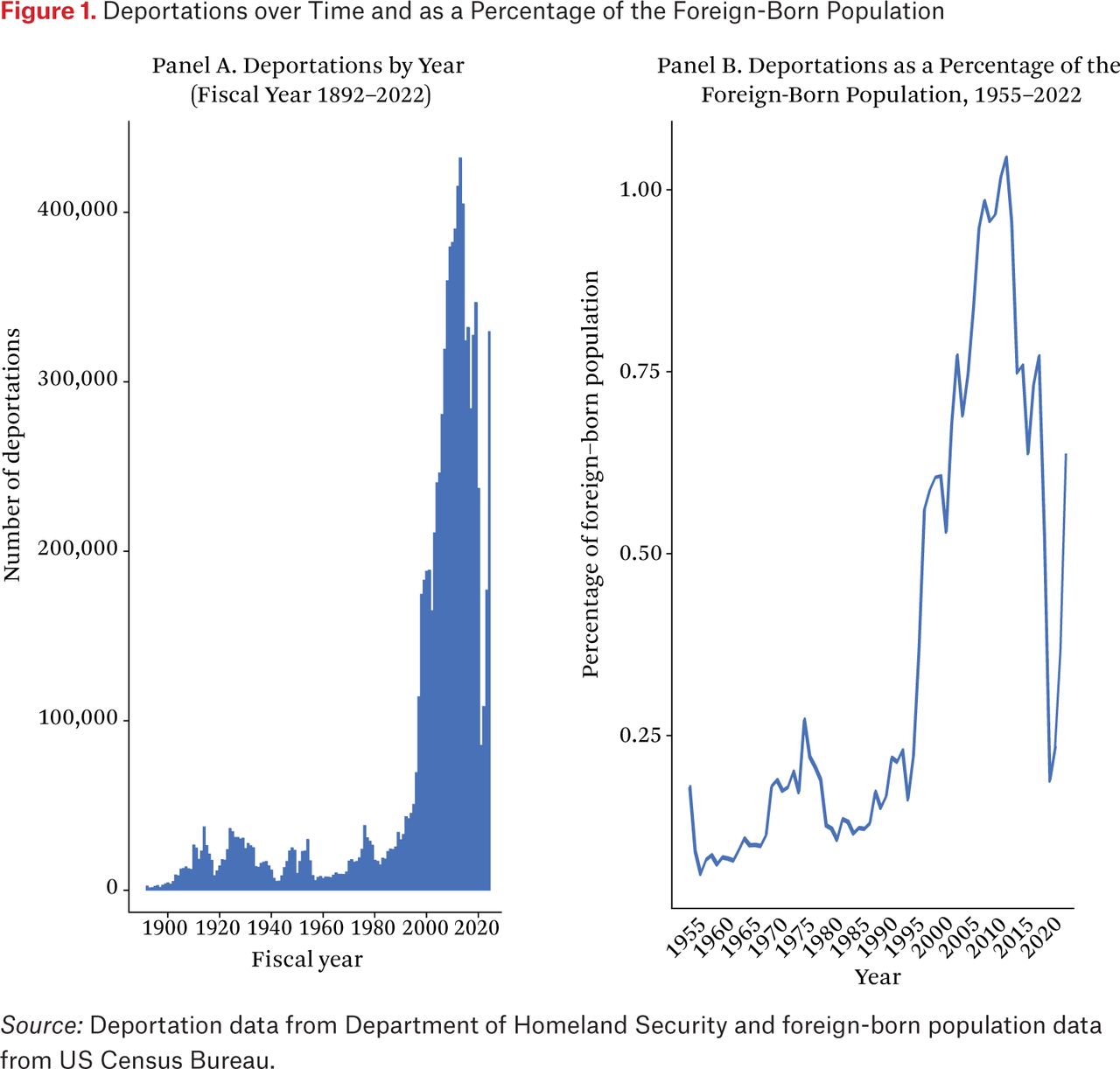 - © 2025 Russell Sage Foundation. Patler, Caitlin, and Bradford Jones. 2025. “The US Deportation System: History, Impacts, and New Empirical Research.” RSF: The Russell Sage Foundation Journal of the Social Sciences 11(4): 1–24. https://doi.org/10.7758/RSF.2025.11.4.01. The authors are grateful to Suzanne Nichols and the anonymous reviewers at the Russell Sage Foundation. Direct correspondence to: Caitlin Patler, at patler{at}berkeley.edu, Goldman School of Public Policy, University of California, Berkeley, 2607 Hearst Avenue, Berkeley, CA 94720, United States. Bradford Jones, at bsjjones{at}ucdavis.edu, One Shields Avenue, Davis, CA 95616, United States.